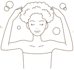 シャンプー剤を手のひら全体に伸ばし、泡立てて、指の腹を使って頭皮を優しくマッサージするように洗います。泡で髪全体を包むように優しく洗うことが大切。