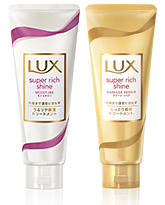 ラックス スーパーリッチシャインのチューブトリートメントは、 ゴールドヒアルロン酸オイル*1(保湿成分)を贅沢に高配合*2。 トリートメント剤を(セミロングで10g程度、マスカット大1、2粒)つけた後、 時間をおかずに洗い流しても効果的。