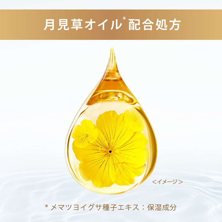 月見草の種子から抽出された濃密なオイルを配合。髪に潤いを与え、集中保湿。